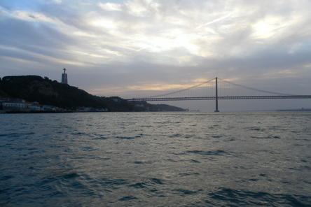 Fique atento às atrações enquanto passa por elas. passe por baixo da Ponte 25 de abril, e admire a Torre de Belém, um monumento fortificado construído para honrar São Vicente, santo padroeiro de Lisboa. Passe pelo Monumento das Descobertas que celebra as realizações dos exploradores portugueses durante a Era dos Descobrimentos e veja o monumento Cristo Rei, inspirado na estátua do Rio de Janeiro.